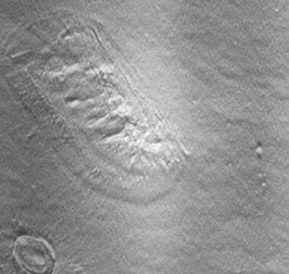 How could any NASA scientist make a fair and accurate decision about the nature of the new MGS Face within just six hours after viewing the raw image? This would be like taking a dark distorted picture of Mount Rushmore and stating to the world that there are no faces carved into the sides of this desolate cliff, it's only "shadows and rock". This rush to judgment and 'shoot from the hip' analysis is disturbing and at most poor science. Where is the careful and proper analysis of this fresh data? The distortions of the raw "Cat-Box" image can be confirmed by simply examining the elongated oval shape of the crater, just below and to the lower left of the "Face" mesa. In the original 1976 Viking image of the Face it is clear that this crater is perfectly round (Figure 2).
